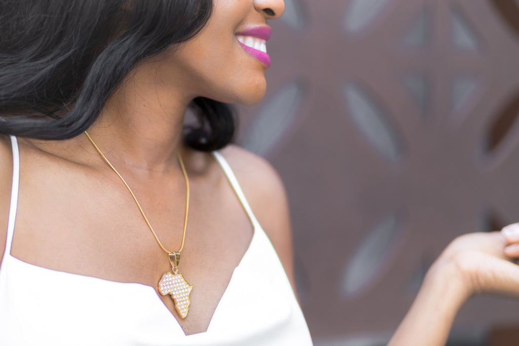 Africa Map Pendant Necklace with stones (TF) Tarnish Free